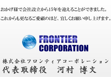 この経済状況の中、より的確に社会情勢を予測する事は大切な事ではありますが、その上で、弊社株式会社フロンティアコーポレーションは、 「人と人とのふれあい」をより一層大切に活動して行きたいと考えています。